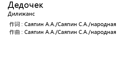 | [00:00.00-1] | 作曲 : Саяпин А.А./Саяпин С.А./народная |