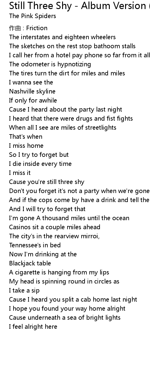 | 歌曲 | Still Three Shy - Album Version (Explicit) |