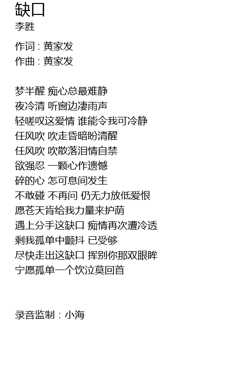 | 尽快走出这缺口 挥别你那双眼眸 | |