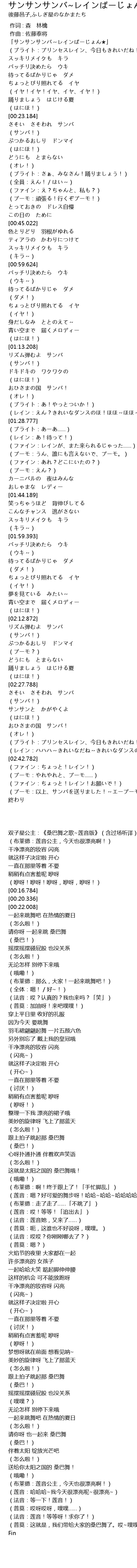 | [00:00.405] | 「サンサンサンバ~レインばーじょん★」 |