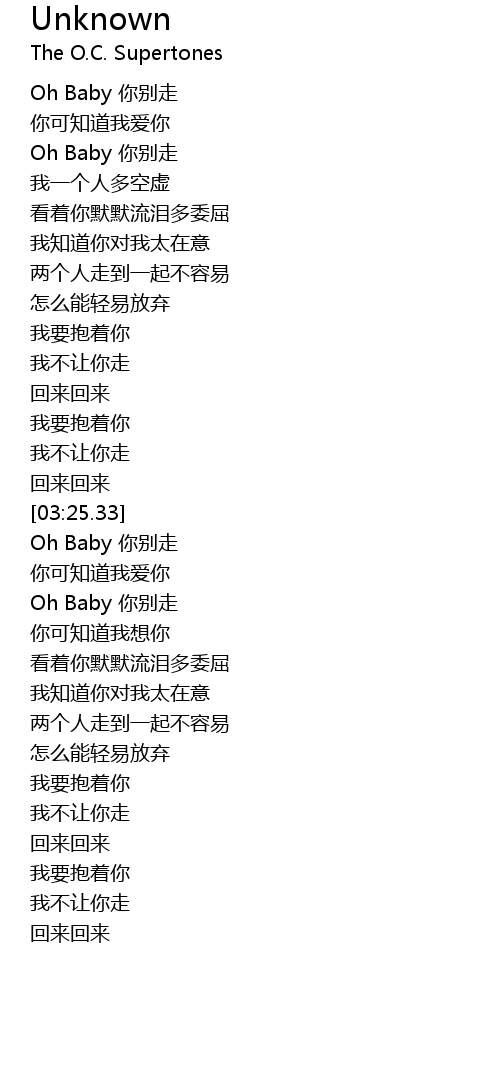 | [04:30.17] | Oh Baby nǐ bié zǒu |