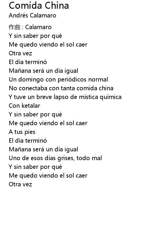 | 歌曲 | Comida China |