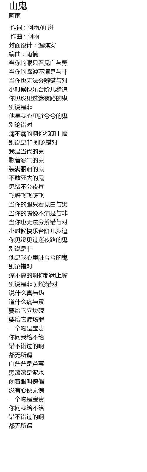 | [00:00.00] | 作词 : 阿雨/闻舟 |