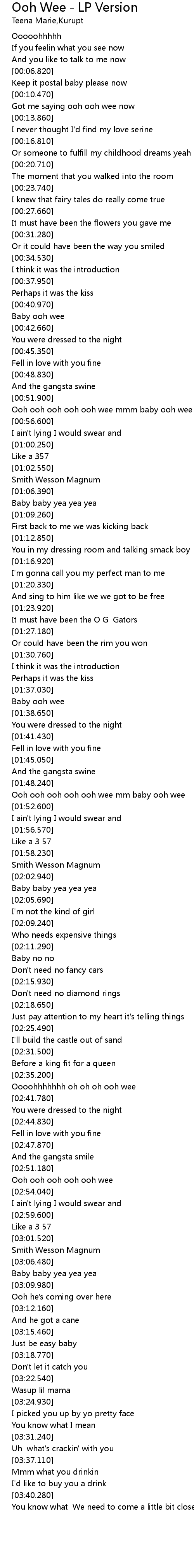 | [00:52.950] | Ooh ooh ooh ooh ooh wee mmm baby ooh wee |