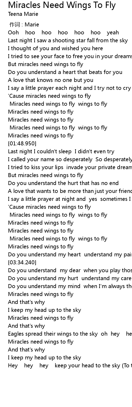 | [02:58.730] | Miracles need wings to fly wings to fly |