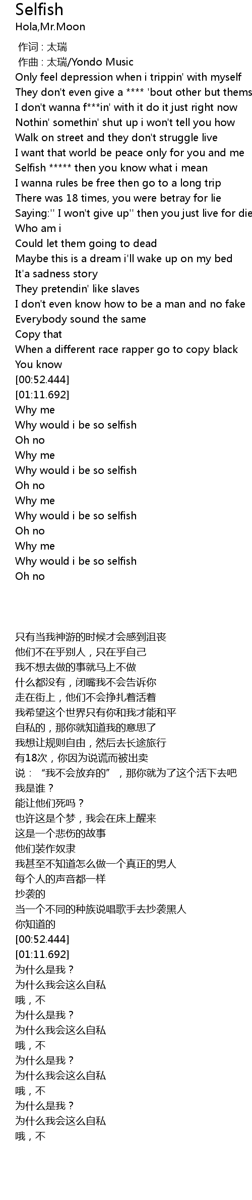 | [01:38.792] | 为什么我会这么自私 |