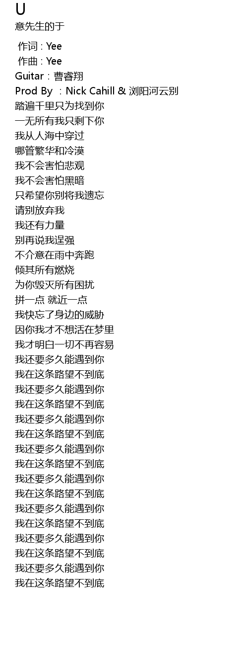| [00:00.00] | 作词 : Yee |