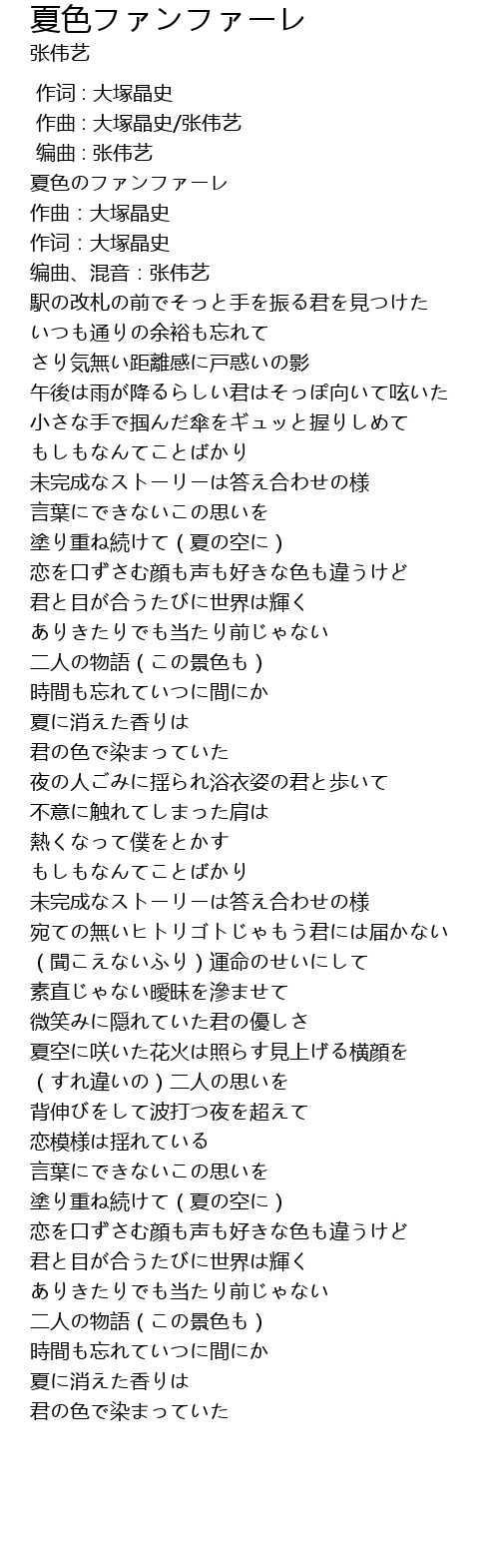 | [02:18.55] | 夜の人ごみに揺られ浴衣姿の君と歩いて |
