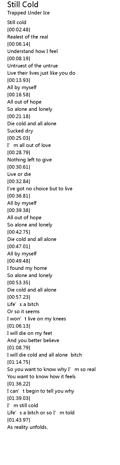 | [00:21.84] | Die cold and all alone |