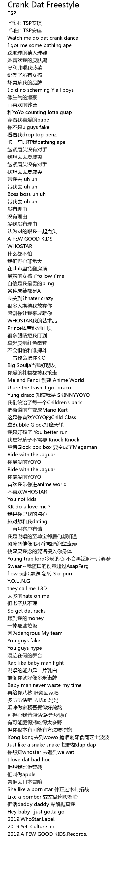 | [02:17.087] | Swear wǒ suí kǒu de chuàng yì chāo guò AsapFerg |