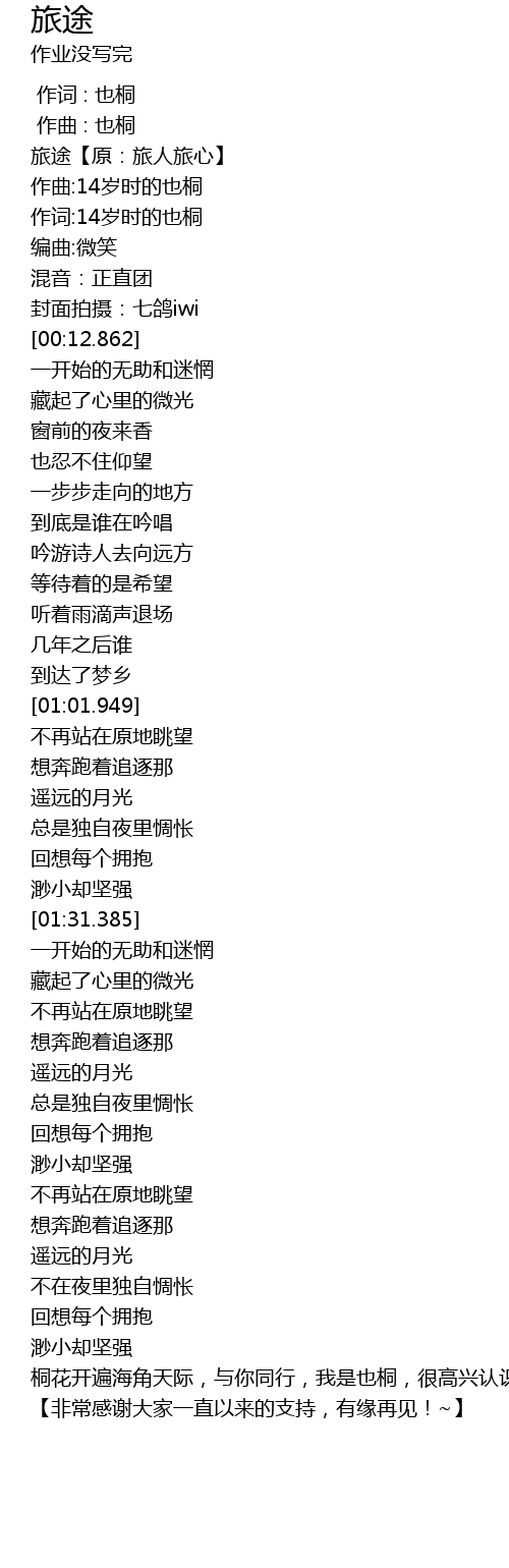 | [00:03.849] | 作曲:14岁时的也桐 |
