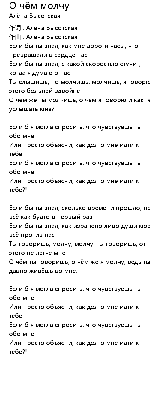 О чём молчу 歌词