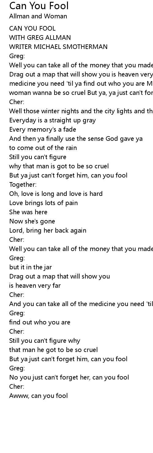 Drag out a map that will show you is heaven very far You take all of the medicine you need 'til ya find out who you are Maybe you can figure why that woman wanna be so cruel But ya, ya just can't forget her, can you fool Oh-oh
