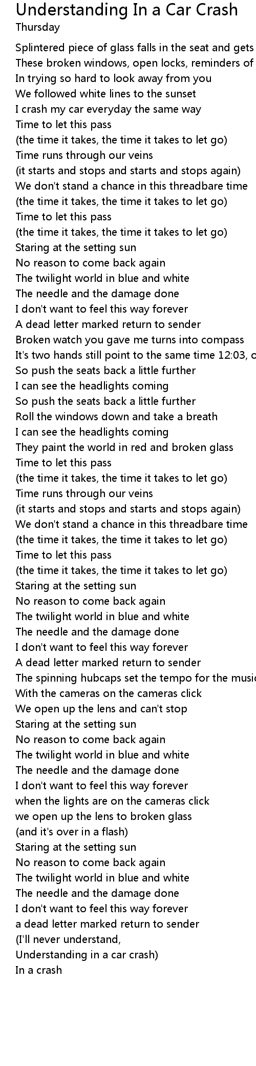 歌曲 Understanding In a Car Crash