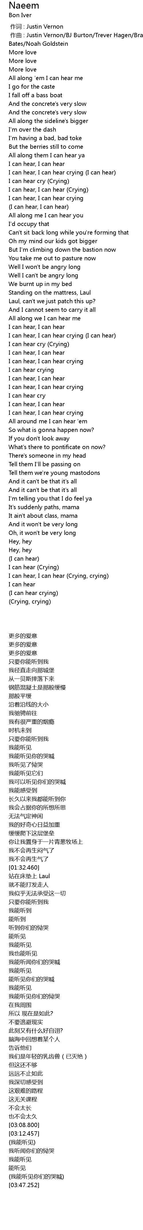 | [00:01.000] | zuo qu : Justin Vernon BJ Burton Trever Hagen Brad Cook JT Bates Noah Goldstein |