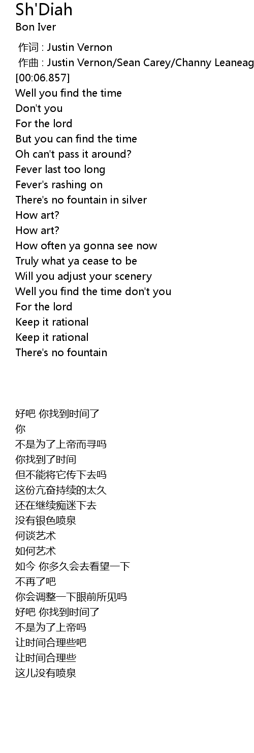| [00:00.000] | zuò cí : Justin Vernon |