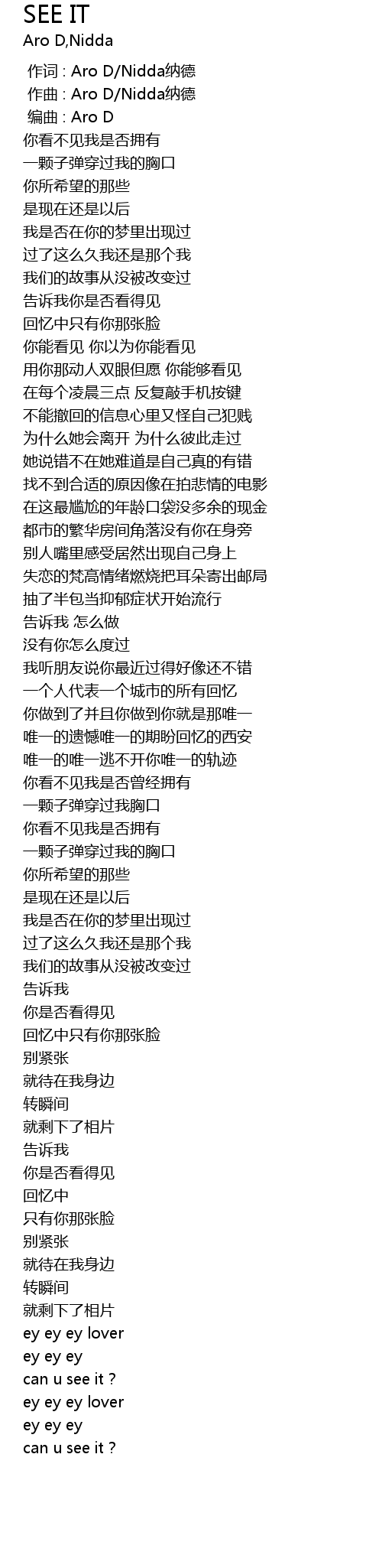 | [00:00.00] | 作词 : Aro D/Nidda纳德 |