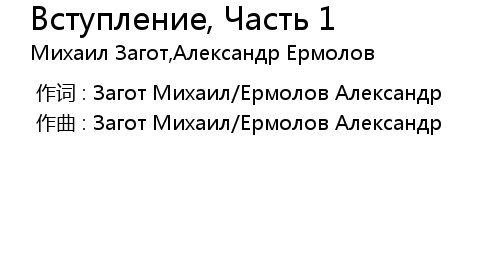 | [00:00.00-1] | 作曲 : Загот Михаил/Ермолов Александр |