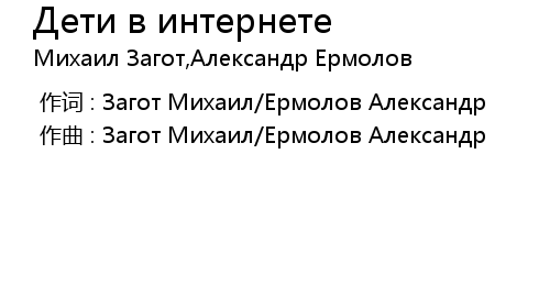 | [00:00.00-1] | 作曲 : Загот Михаил/Ермолов Александр |