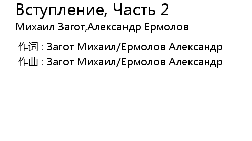 | 歌曲 | Вступление, Часть 2 |