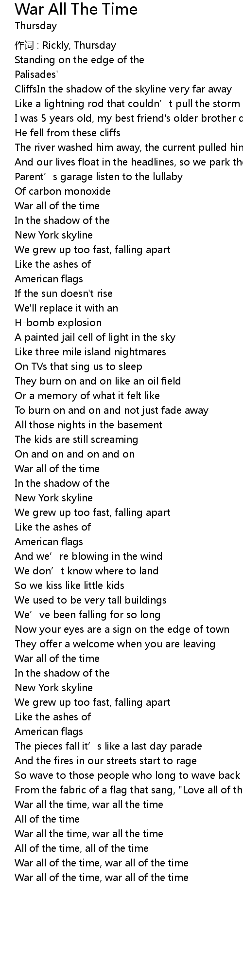 | From the fabric of a flag that sang, " Love all of the time" | |