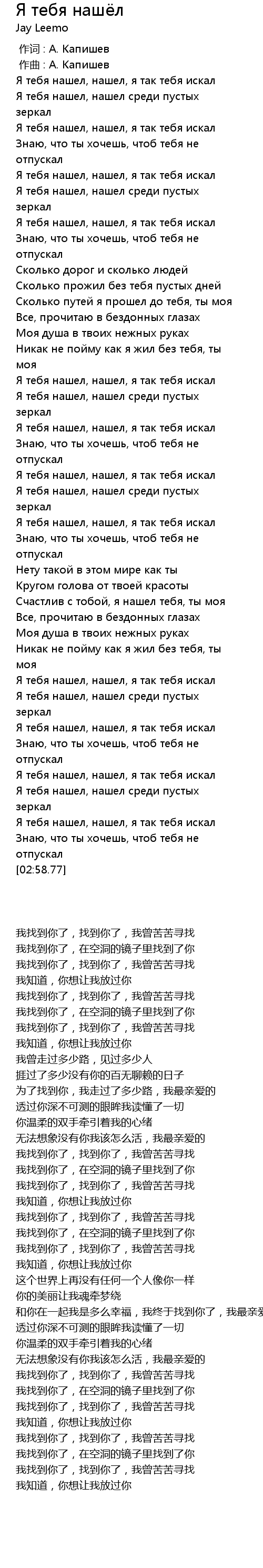 | [02:34.60] | Я тебя нашел, нашел, я так тебя искал |