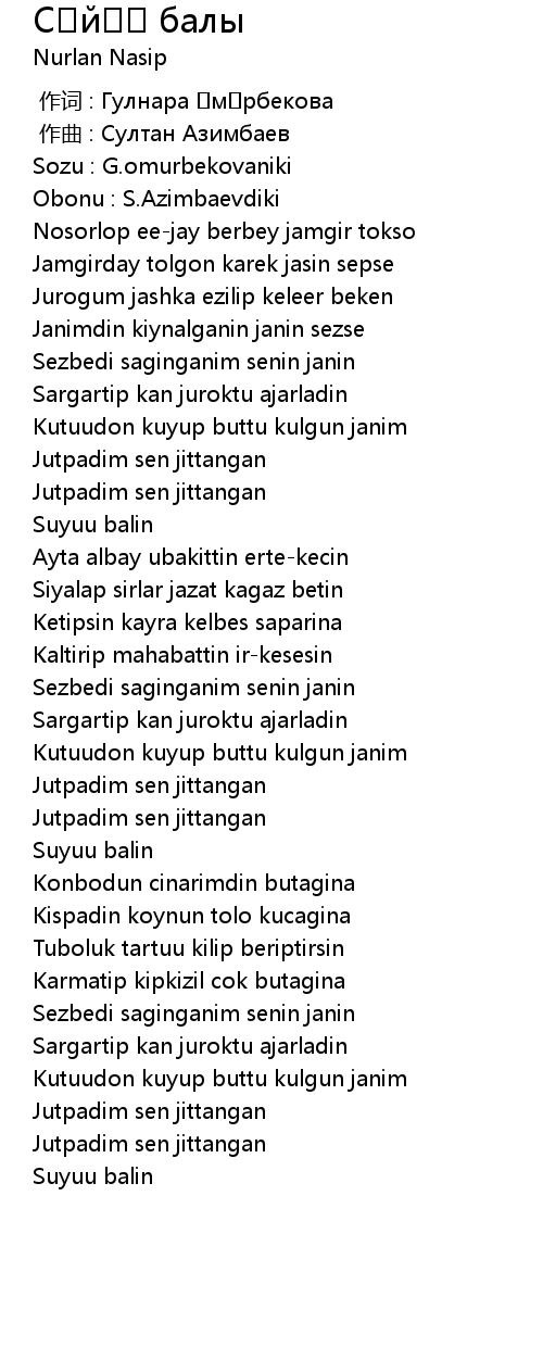 | [00:00.000] | 作词 : Гулнара Өмүрбекова |