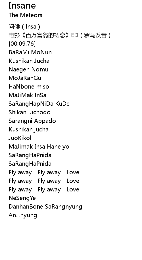 | [00:07.35] | 电影《百万富翁的初恋》ED(罗马发音) |