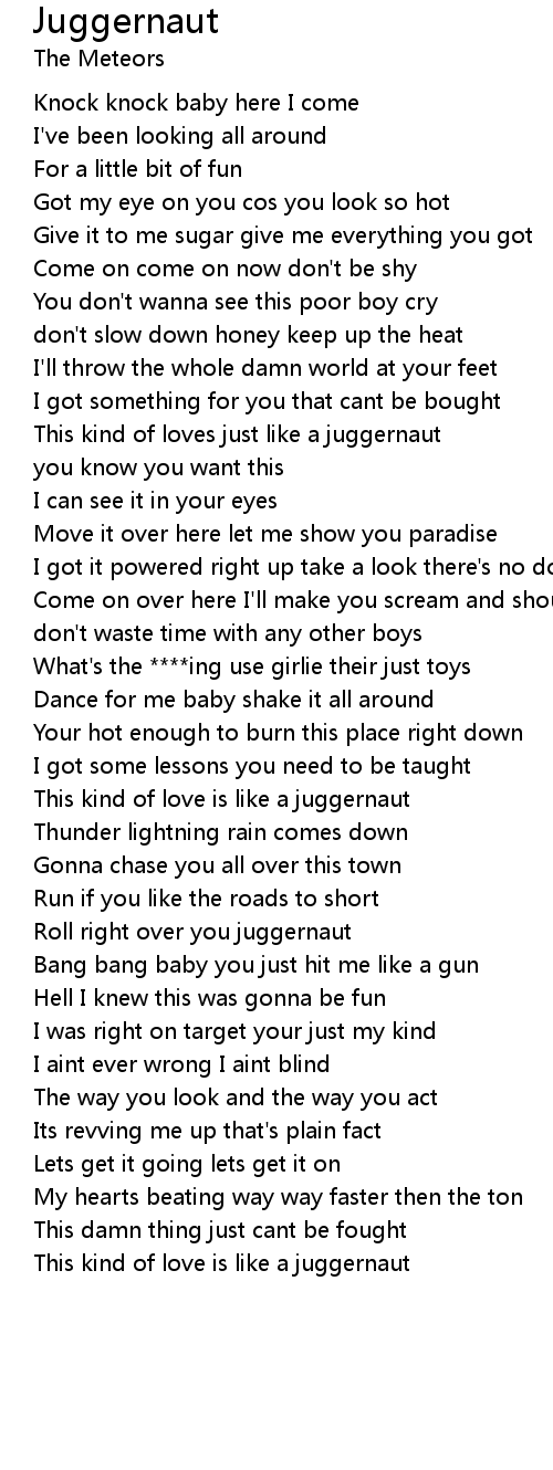 This kind of loves just like a juggernaut |