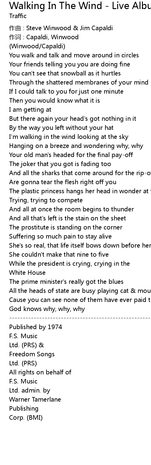 | 歌曲 | Walking In The Wind - Live Album Version |