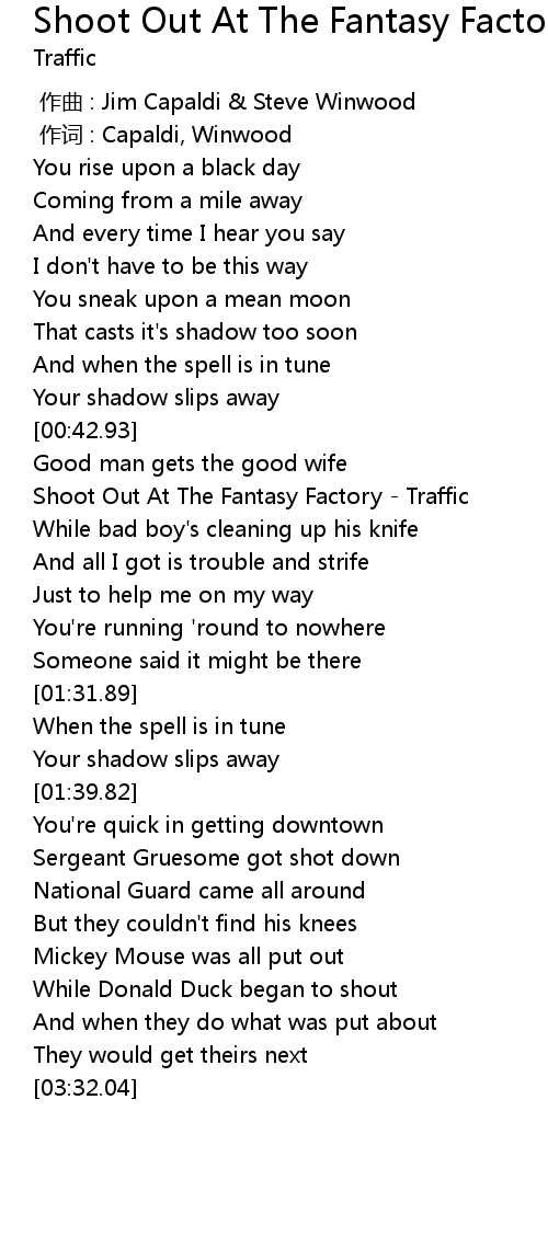 | [01:12.20] | Shoot Out At The Fantasy Factory - Traffic |