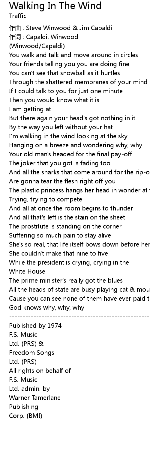 | 作曲 : Steve Winwood & Jim Capaldi | |