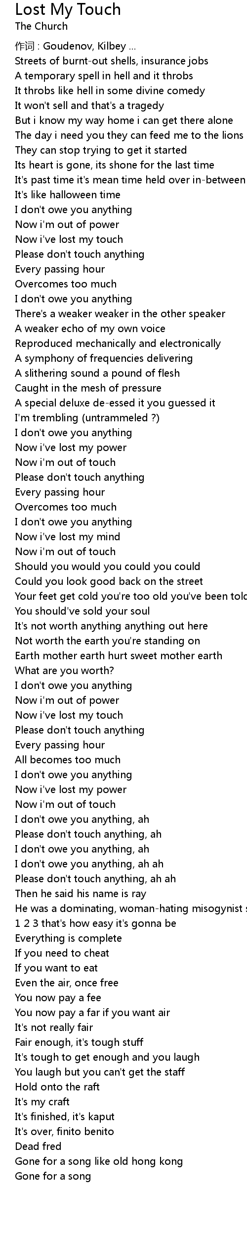 | Now i' ve lost my touch | |