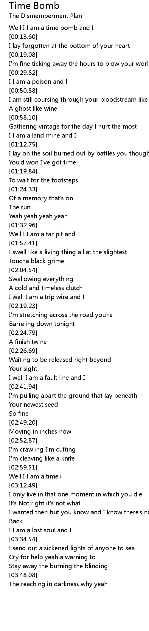 Well I I am a time bomb and I |