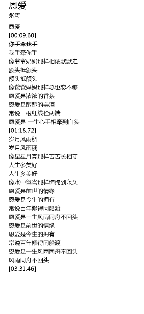 | [01:06.15] | 恩爱是 一生心手相牵到白头 |