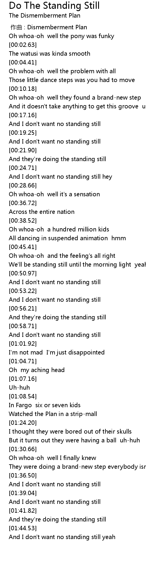 | [01:43.20] | And they' re doing the standing still |