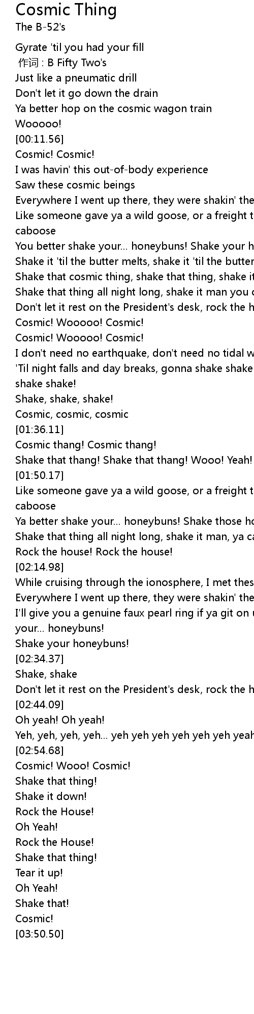 | [00:42.15] | Shake that cosmic thing, shake that thing, shake it, ohhhh yeah! |