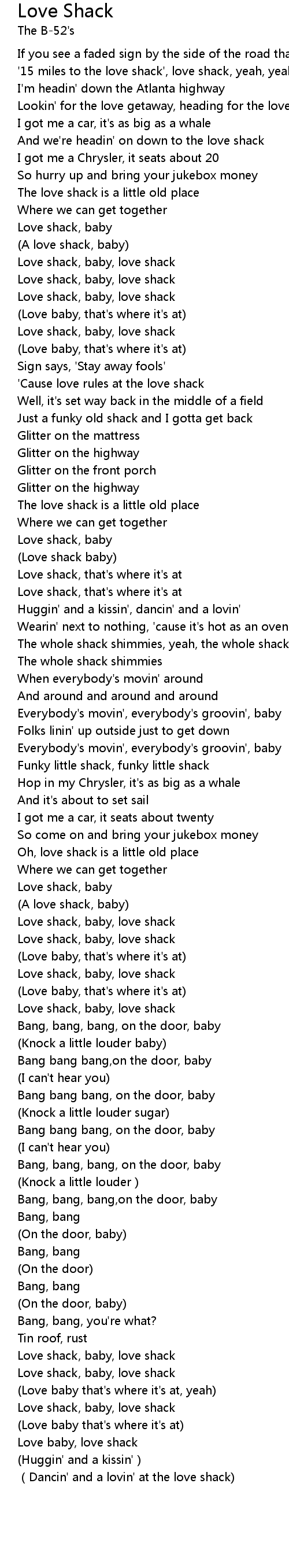 | [05:00.890] | Love shack, baby, love shack |