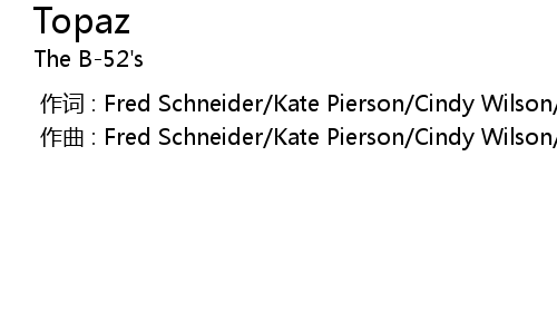 | [00:00.000] | 作曲 : Fred Schneider/Kate Pierson/Cindy Wilson/Keith Strickland |