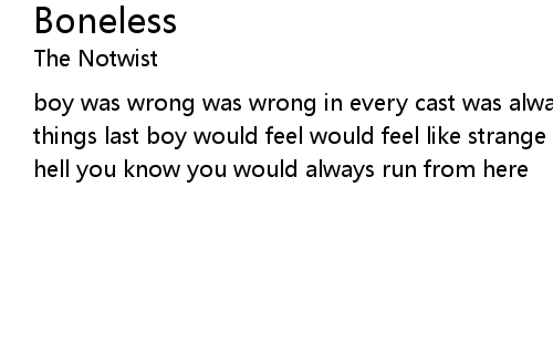 | boy was wrong was wrong in every cast was always told that make up would make things last boy would feel would feel like strange boneless this town is all in hell you know you would always run from here |
