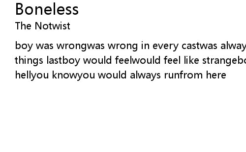 boy was wrongwas wrong in every castwas always told that make upwould make things lastboy would feelwould feel like strangebonelessthis town is all in hellyou knowyou would always runfrom here