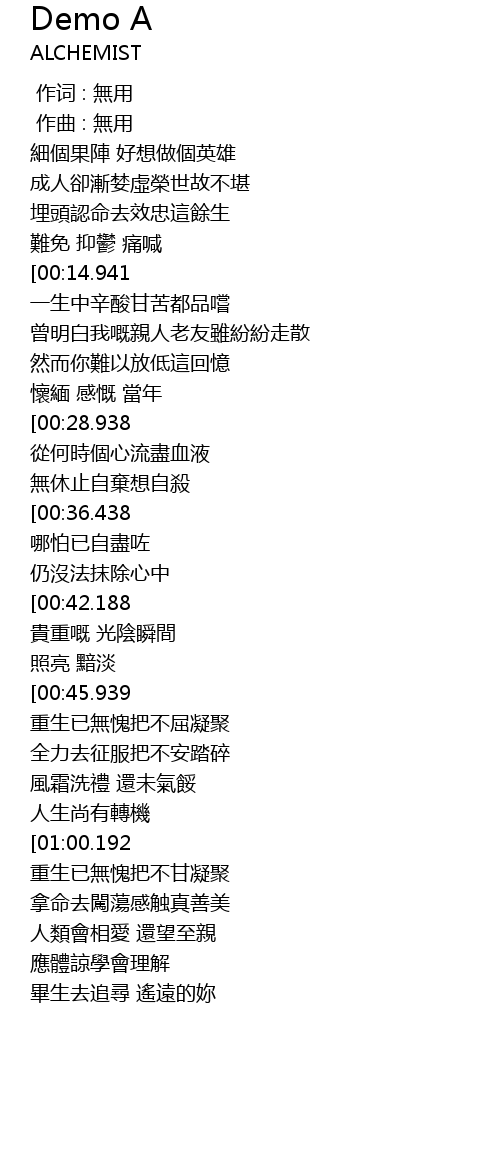 | [00:18.702] | 曾明白我嘅親人老友雖紛紛走散 |