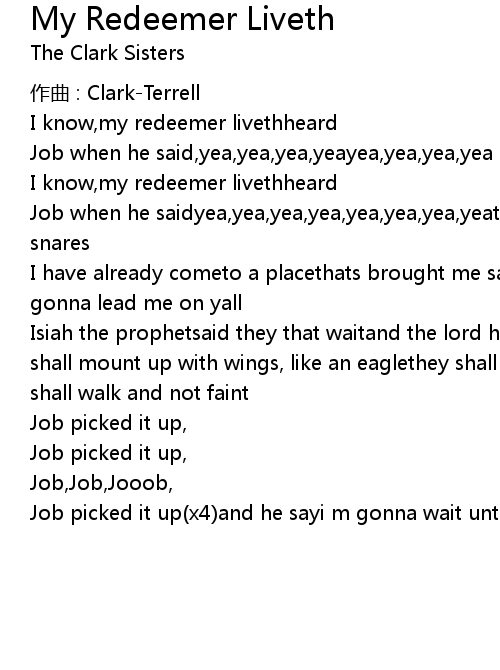 | 歌曲 | My Redeemer Liveth |