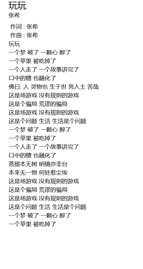 | [00:01.000] | zuò qǔ : zhāng xī |