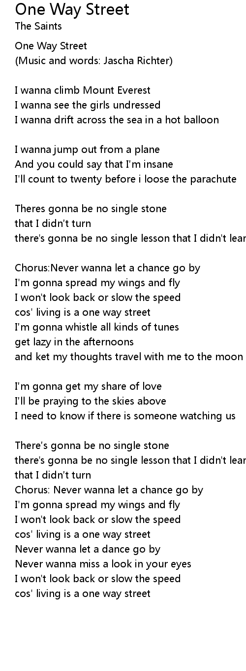| cos' living is a one way street | |