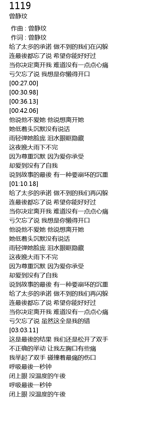 | [00:00.00] | 作曲 : 曾静玟 |