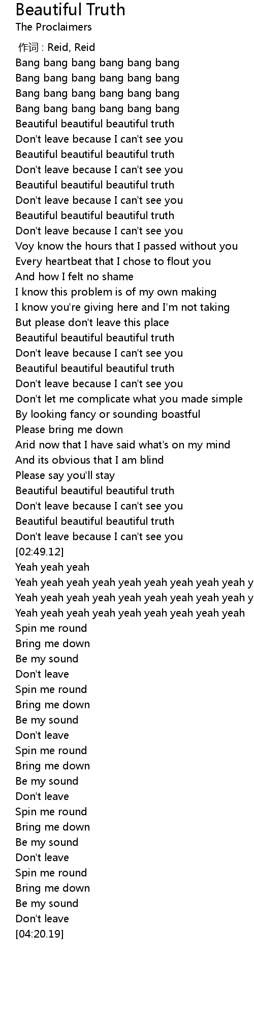 | [00:45.54] | Beautiful beautiful beautiful truth |