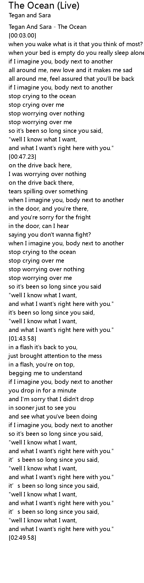 | [00:00.00] | Tegan And Sara The Ocean |