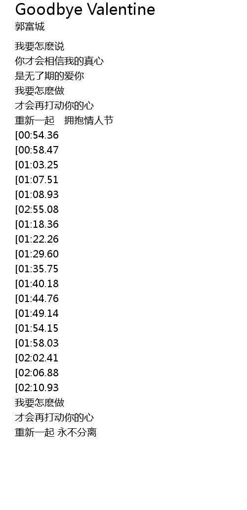 | [03:15.51][01:35.75] | GOODBYE VALENTINE |