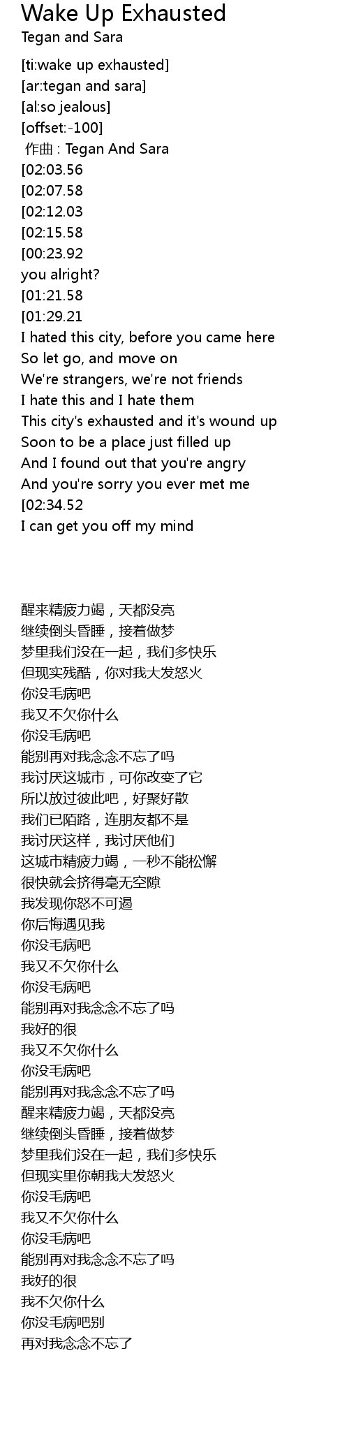 | [00:00.00] | 作曲 : Tegan And Sara |